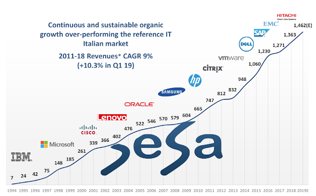 Jag ska inte bli långrandig och göra någon djupare analys, men jag tänkte dela mitt senaste innehav och det är SeSa SpA. Bolaget är en italiensk distributör av IT-produkter och tjänster samt en division som jobbar med mjukvaruintegration, systemimplementering osv. Man säljer produkter åt Microsoft, Cisco, HP, IBM osv, de stora drakarna i branschen. Marknadsandelen är norr om femtio procent på den italienska hemmamarknaden. Marknadsvärdet är strax under 20 miljarder SEK, vilket först avskräckte mig, men i linje med de tankar jag presenterade i inlägget tog jag en position i bolaget. Historiken talar för sig själv och bolaget värderas kring 13 x vinsten för nästa år. Omsättningen har vuxit i snitt med 12 procent per år och vinsten med 18 procent per år. Bolaget är till 50 procent ägt av grundare och historiken talar för sig själv. Bolaget tuggar på som en maskin, år efter år.